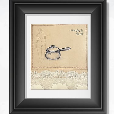 Me, Home and Kitchen I, stitching on cloth, 14 x 13 in.